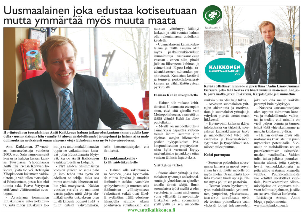 Yksi ensimmäisiä näitä artikkelimuotoisia Kari Oksasen tekemiä vaalihaastatteluita oli nykyisen puolustusministeri Antti Kaikkosen haastattelusta tehty artikkeli.