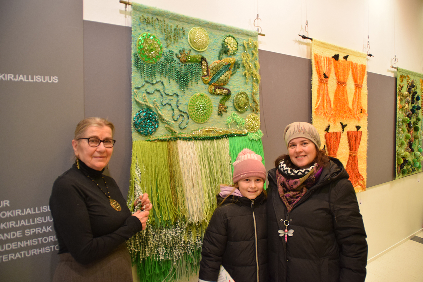 Galleriakäytävässä on piipahdellut haastattelun aikana jatkuvasti ihmisiä Hultin reliefejä ihastelemassa. Äiti ja tytär Milla ja Elsa Kivioja kiittelevät jännittäviä kolmiulotteisia vaikutelmia.