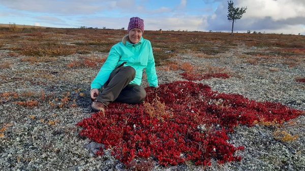 Tuuli Kassila patikoimassa Lemmenjoella. Univalmennuksen lisäksi Kassila mm. vie asiakkaitaan rentoutumaan Inariin. (Kuva: Seppo Immonen)