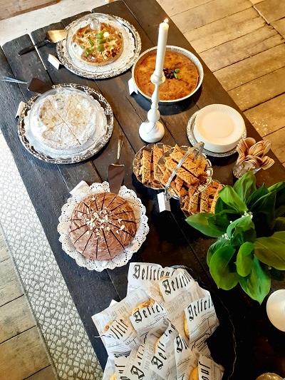 Kahvilansa pullat ja piirakat Jakola leipoo itse. Haastattelun lomassakin hän käy ottamassa yhden piirakan pois uunista. Kahvila täydensi Vuorikosken myllyn palvelut tänä kesänä. Alkunsa se sai asiakkaiden toiveesta.