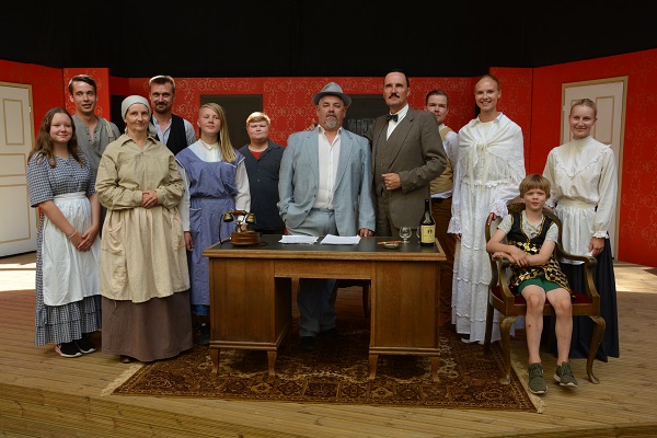Viimeisen Patruunan näyttelijäkaarti: Emilia Snabb (vas), Henrik Wikström, Minnamaria Koistinen, Henna Ahlroth, Kristian Grönroos, Tommy Haakana, Dan Idman, Janne Jurvanen, Charlotta Ahonen, Hector Lilius ja Sanna Salán. Kuvasta puuttuu Jorma Haapasaari.