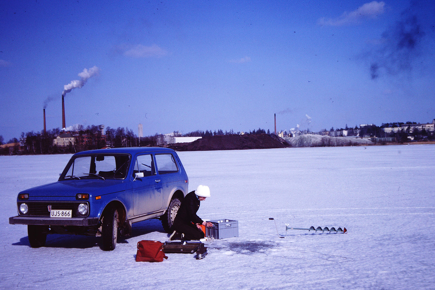 Provtagning på Lojo sjö på 1980-talet. (LUVY / arkivbild)