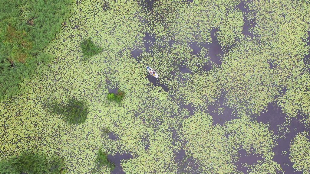 Länsi-Uudenmaan vesi ja ympäristö ry tekee laaja-alaisesti työtä alueen vesistöjen hyväksi, mm. tutkii vesien tilaa ja toteuttaa kunnostuksia. Kuvassa kasvillisuuskartoitusta Stora Lonoks -järvellä Kirkkonummella.