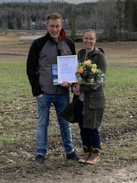 Vuoden Vesiensuojelijat Eliisa ja Mika Malin ovat iloisia, että palkinnon saa maatila.