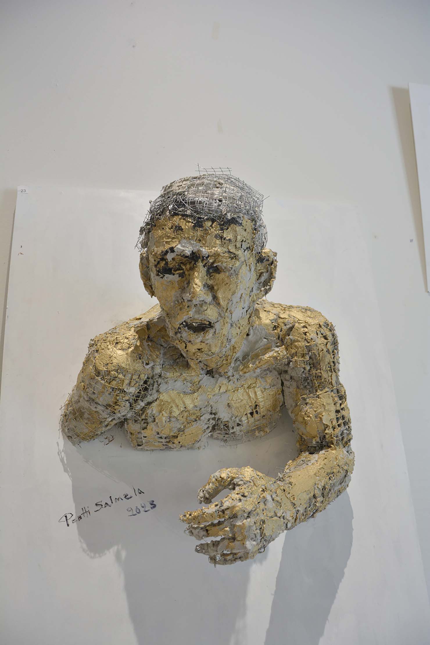 Näyttely kahmaisee kerralla ison lämpäreen taiteen kentästä, sillä esillä on veistoksia ja maalauksia eri tekniikoilla – sekä lyrikkaa. Joskus runo sanallistaa suoraan sen, mitä tietty veistos tai maalaus kuvaa.