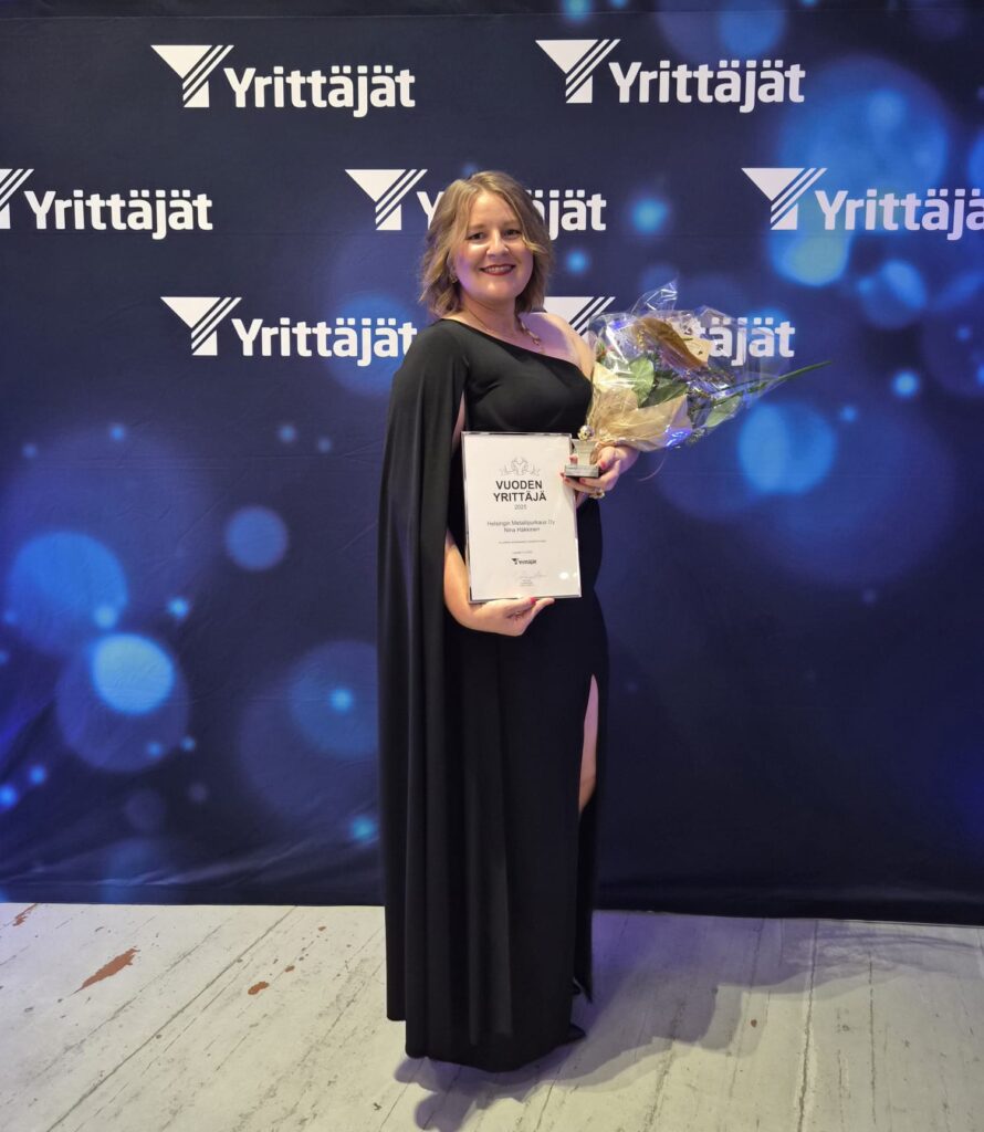 Palkinnon sai Nina Häkkinen, Helsingin Metallipurkaus Oy:n toimitusjohtaja. Yrityksen juuret ulottuvat 1960-luvun puoliväliin, jolloin yrittäjän isoisä perusti sen pääkaupunkiseudulle.